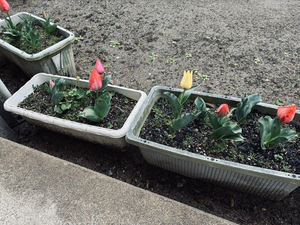 園庭のプランターにチューリップが植えてあります。